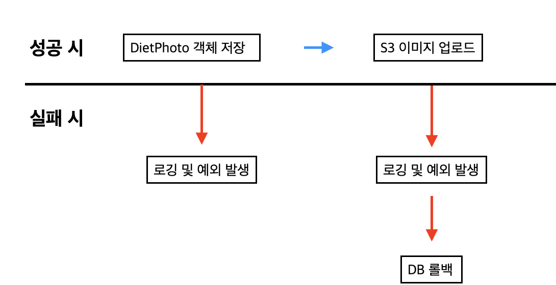 S3에 이미지를 업로드하는 동작과 DB에 URL정보를 담은 DietPhoto를 저장하는 동작을 하나의 트랜잭션으로 설계하여,